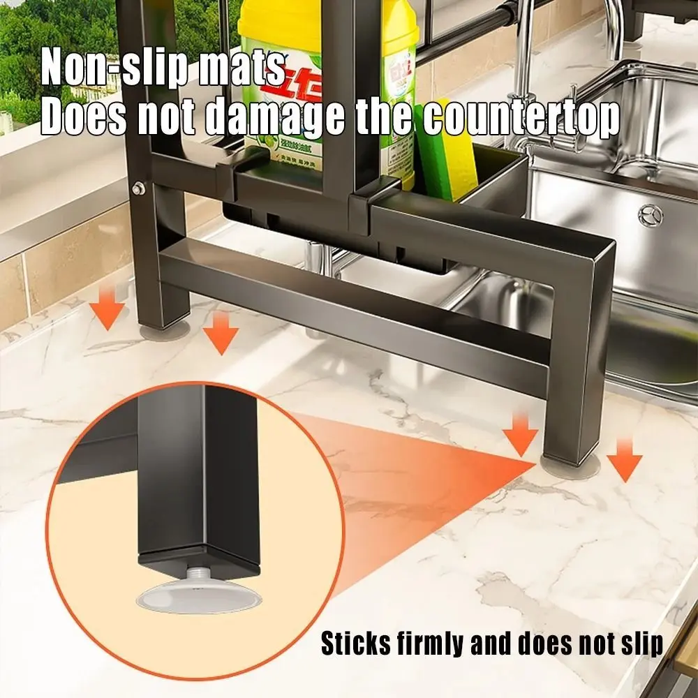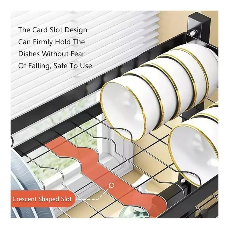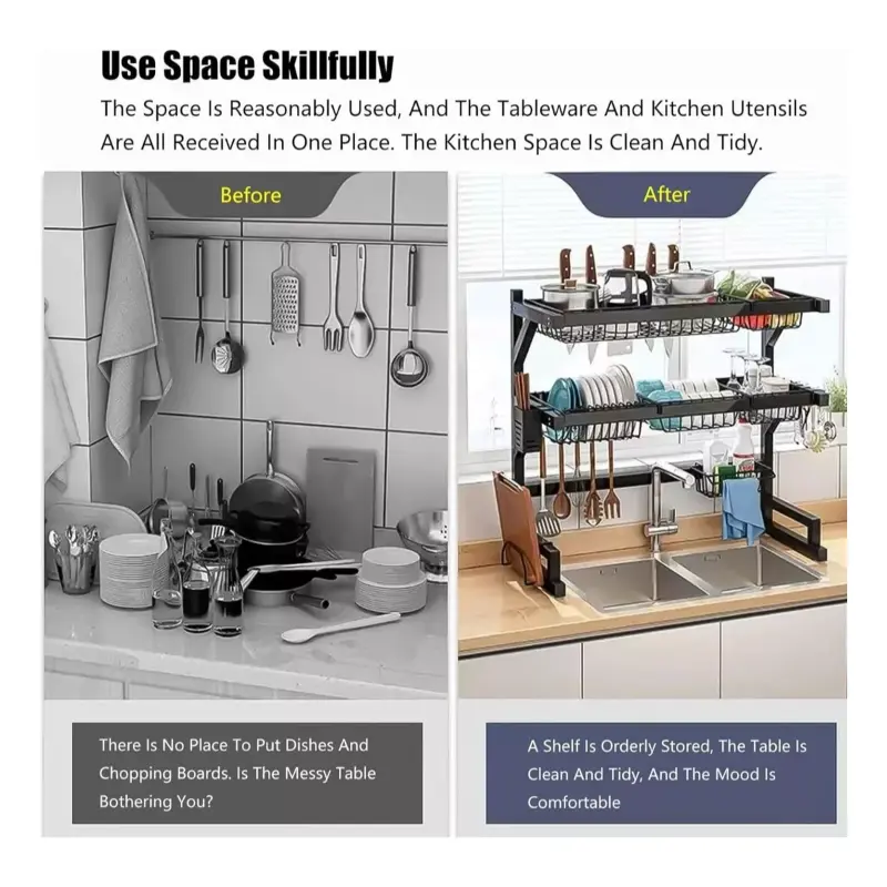 Descripción Escurridor Metálico Sobre Bacha de 3 Niveles.Bandejas completamente extraibles.Recipientes de utensilios removibles.Soporte para tabla removibles.Ganchos para articulos de cocina removibles.Base con sopapas que impiden el movimiento del escurridor.Medidas: 65Cm X 51,5Cm X 31,5CmTotalmente Equipado.Color: Negro.